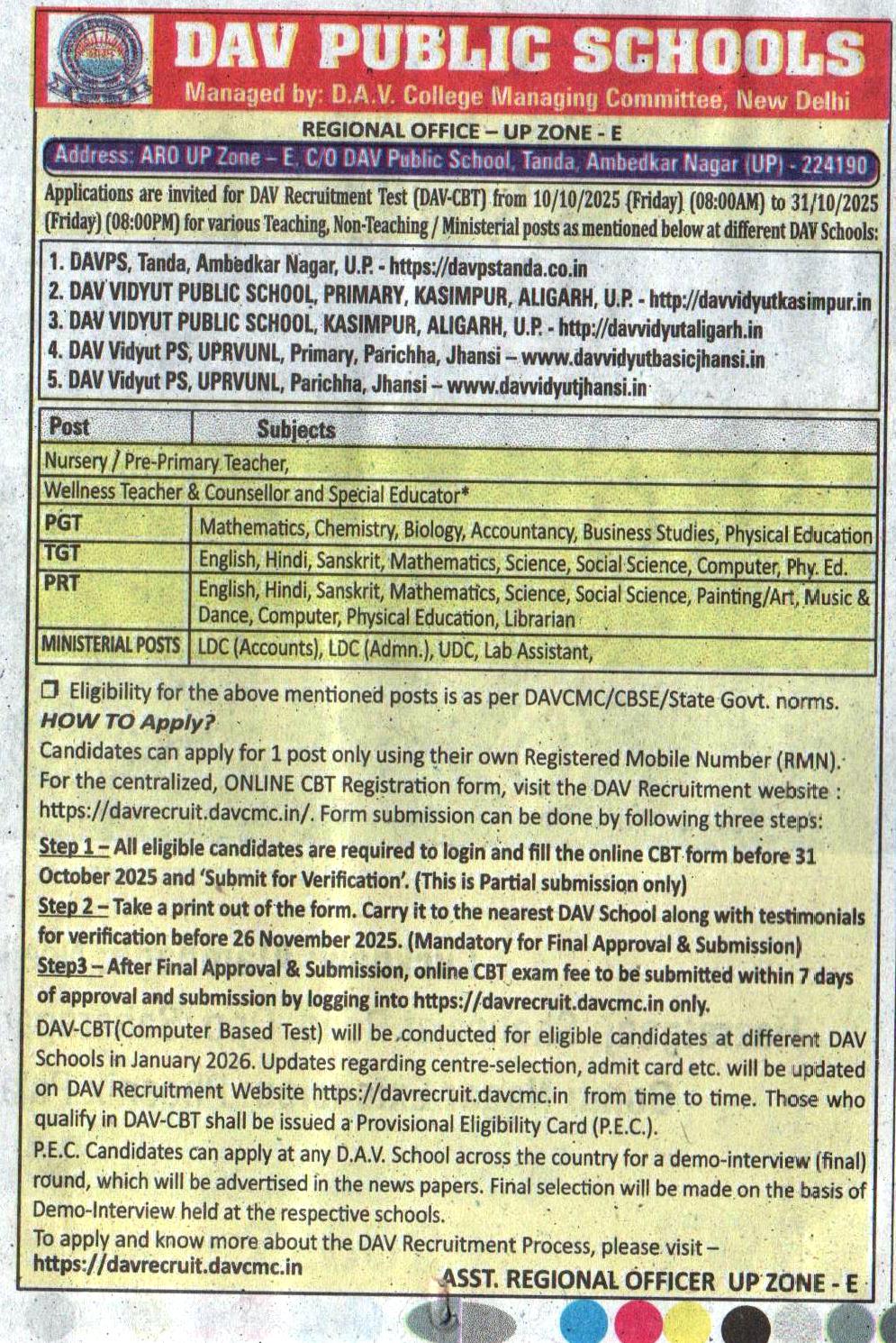 DAV Staff Recruitment (CBT-2026) Advertisement...